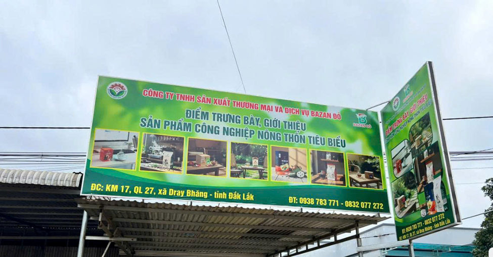Thực hiện đề án, Công ty TNHH Sản xuất Thương mại và Dịch vụ Bazan đỏ đã đầu tư phòng trưnng bày để phục vụ việc quảng bá, giới thiệu và tiêu thụ sản phẩm của doanh nghiệp. Phòng trưng bày sản phẩm công nghiệp nông thôn tiêu biểu là kênh phân phối tin cậy, có vai trò quan trọng trong tiêu thụ, quảng bá sản phẩm của tỉnh, nhất là phục vụ nhu cầu tiêu dùng của người dân tham quan, mua sắm.