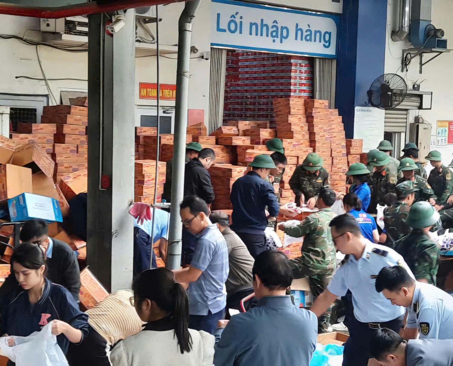 Phân loại hàng hoá cứu trợ tại xã Sông Hinh